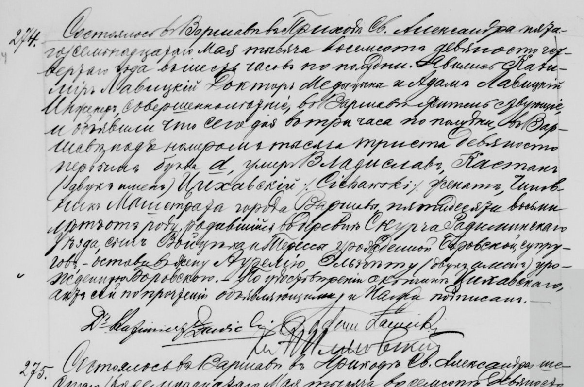 | sw.1040509 | m | | | | | | | | | | | Akt zgonu: Warszawa św. Aleksander (obecn. m. Warszawa), 274/1894 [indeks na http://geneteka.genealodzy.pl/] http://localhost/mjm/aleksander_1894_158_167_0619.jpg [podgląd] |