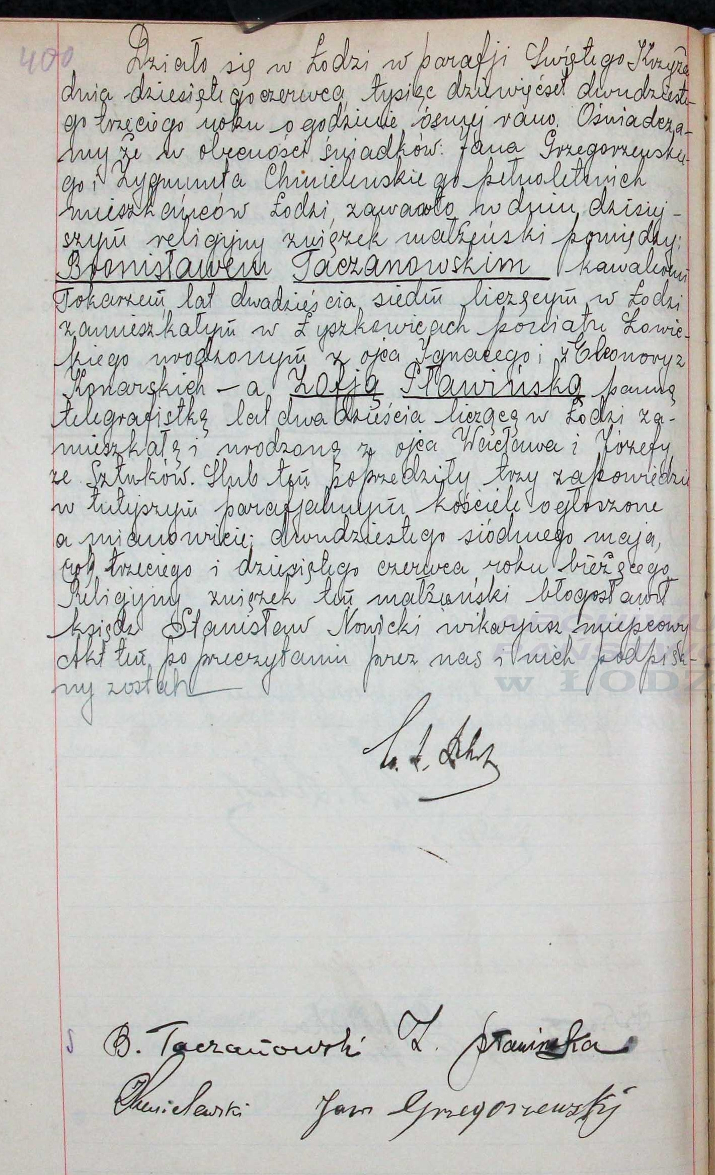 | sw.1288366 | sw.1288366 | sw.841714 (sw.841714) | sw.841715 (sw.841715) | Akt małżeństwa: Łódź św. Krzyż (obecn. woj. łódz.), 400/1923 [indeks na http://geneteka.genealodzy.pl/] http://metryki.genealodzy.pl/metryki.php?op=kt&ar=3&zs=1563d&sy=1923b&kt=1 [podgląd] |
