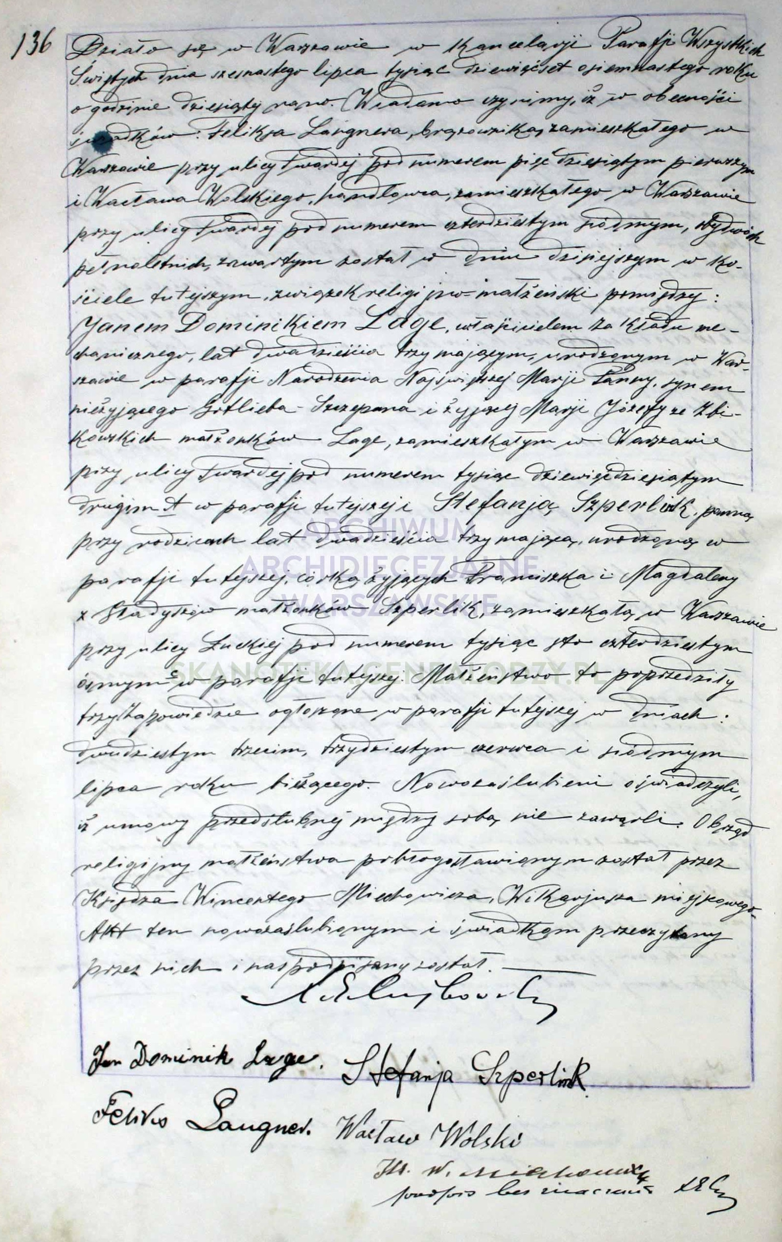 | sw.1100046 | sw.1100047 (sw.842028) | sw.1100048 (sw.842029) | Akt małżeństwa: Warszawa św. Aleksander (obecn. m. Warszawa), 181/1889 [indeks na http://geneteka.genealodzy.pl/] http://metryki.genealodzy.pl/metryki.php?op=kt&ar=1&zs=0162d&sy=1889b&kt=2 [podgląd] |