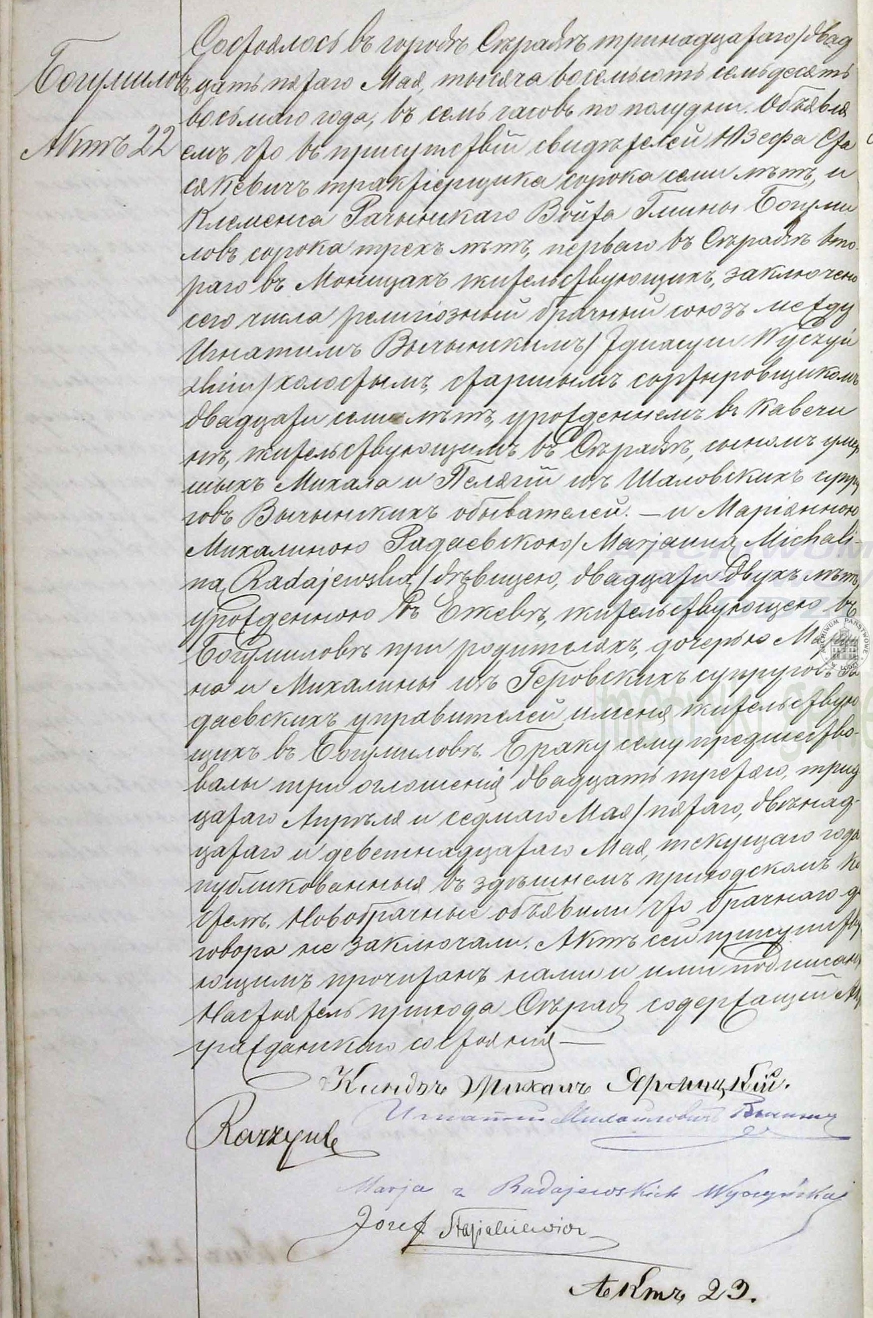 | sw.845465 | sw.845464 (sw.845464) | 1878 | xpar.400 | Akt małżeństwa: Sieradz (obecn. woj. łódz.), rok 1878, nr aktu 22 [indeks na http://geneteka.genealodzy.pl/] http://metryki.genealodzy.pl/metryka.php?ar=3&zs=1663d&sy=1878&kt=2&plik=22-23.jpg [podgląd] | Akt ślubu obecny w bazie Geneteka |