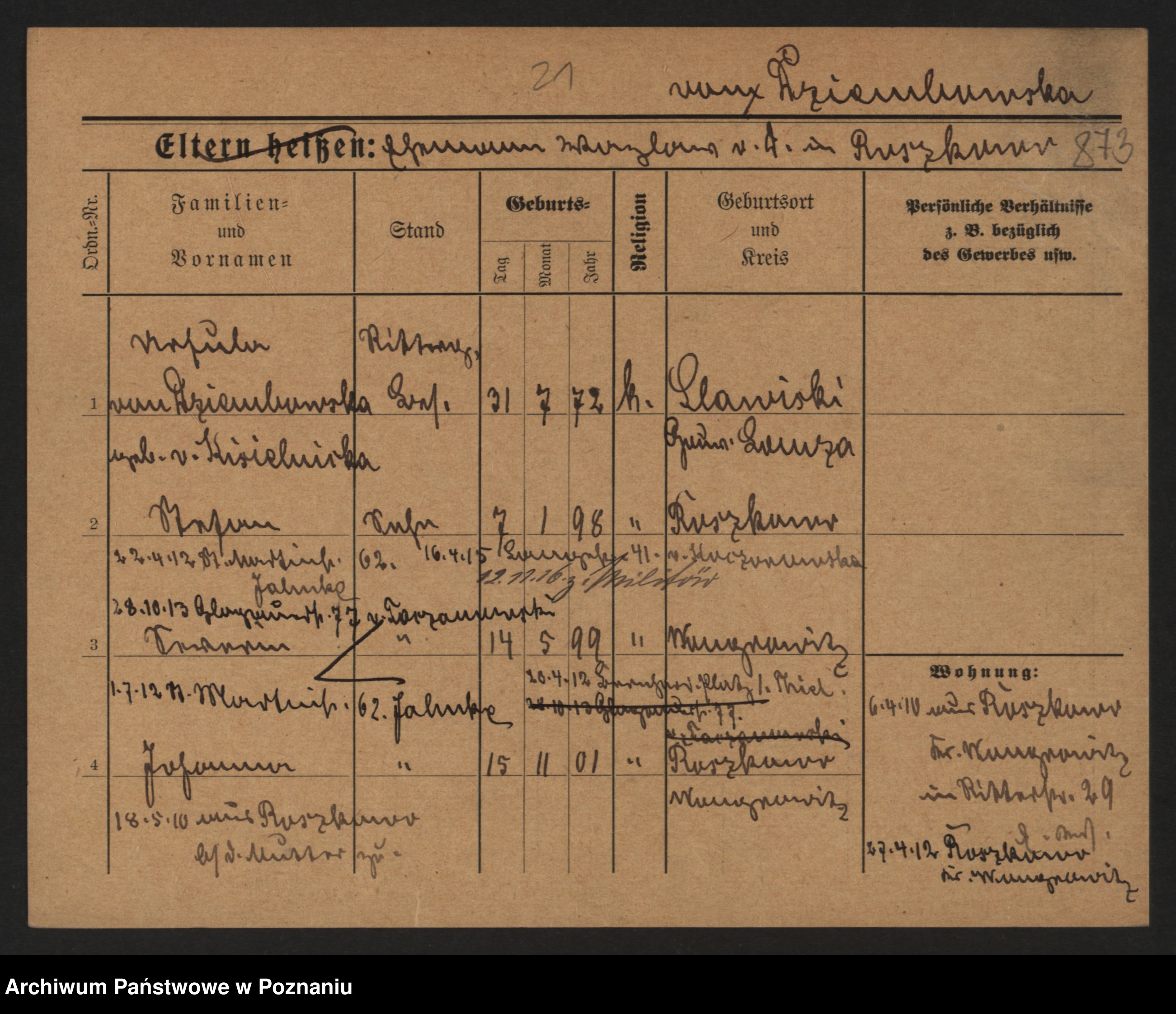 Uwaga: przydomek, nazwisko, „z”, herb, tytuł aryst. i linia są dziedziczone automatycznie z ojca na dzieci. Tu widać te wpisy, które są podane bezpośrednio przy tej osobie.Rodzice