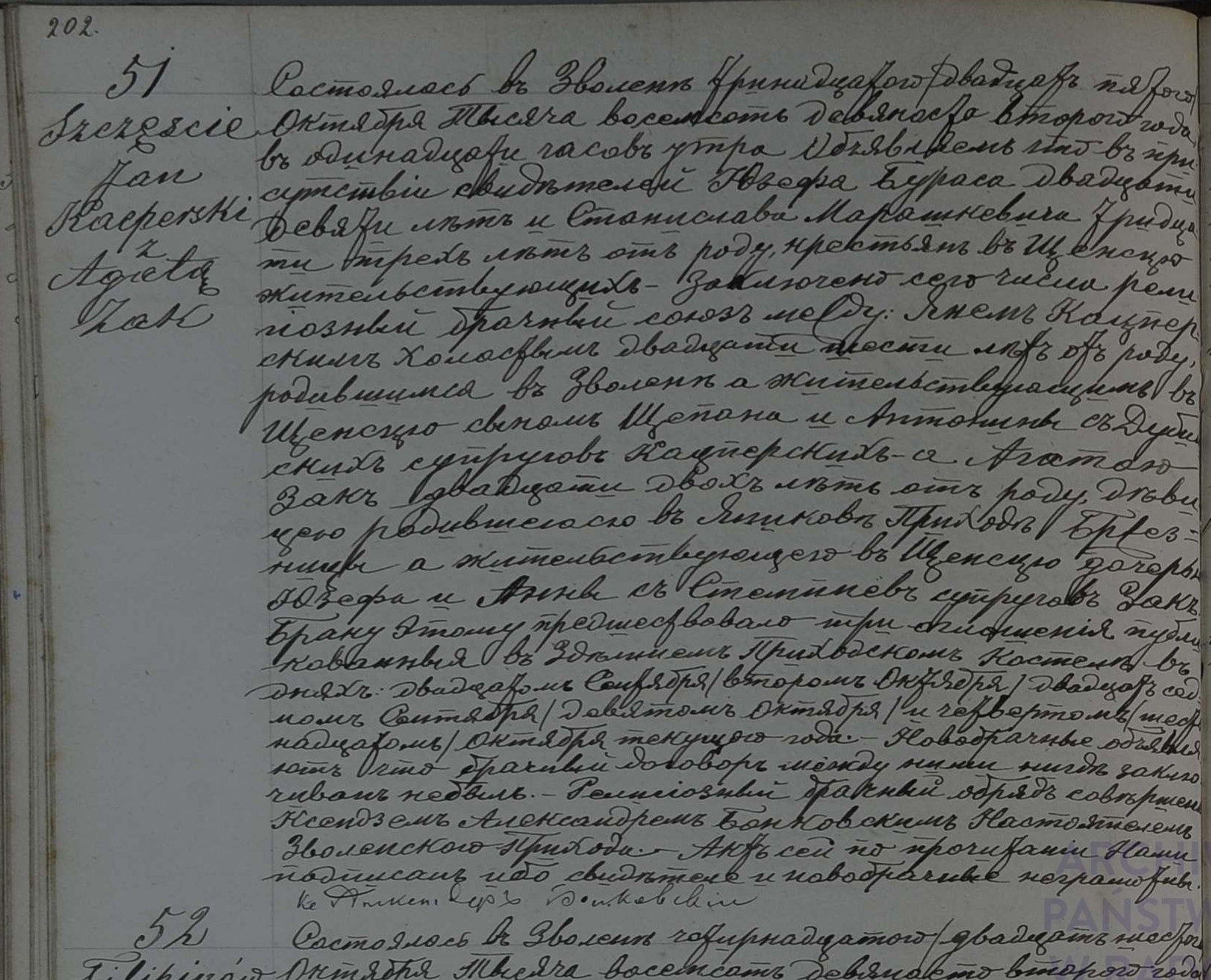 | sw.885092 | sw.885092 | sw.869121 (sw.869121) | sw.869122 (sw.869122) | Akt małżeństwa: Zwoleń (obecn. woj. mazow.), 51/1892 [indeks na http://geneteka.genealodzy.pl/] http://metryki.genealodzy.pl/metryki.php?op=kt&ar=4&zs=0178ad&sy=1892&kt=2 [podgląd] |