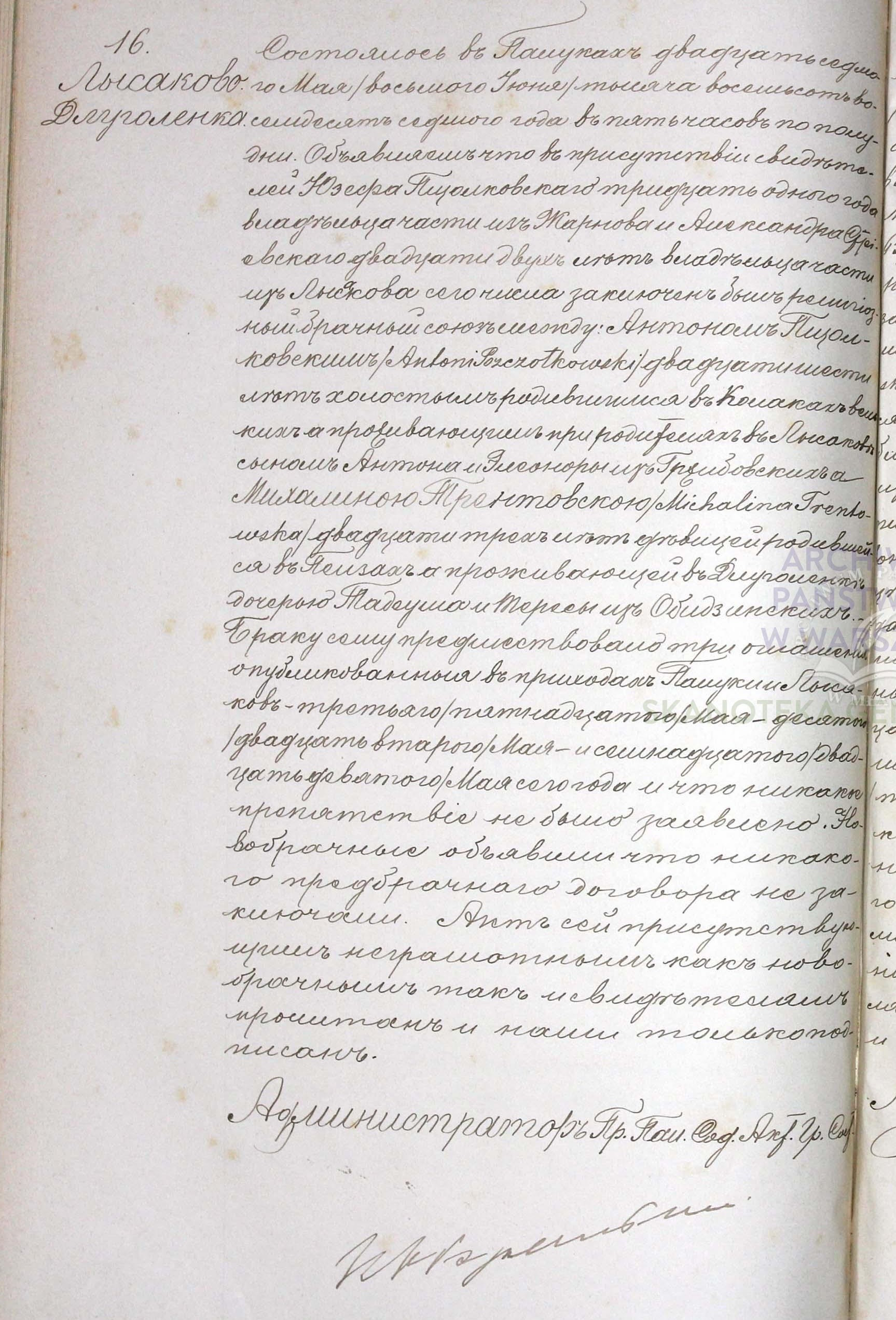 | sw.877472 | sw.877472 | sw.877473 (sw.872414) | sw.877474 (sw.872415) | Akt małżeństwa: Pałuki (obecn. woj. mazow.), 31/1884 [indeks na http://geneteka.genealodzy.pl/] http://metryki.genealodzy.pl/metryki.php?op=kt&ar=13&zs=0151d&sy=1884&kt=2 [podgląd] |