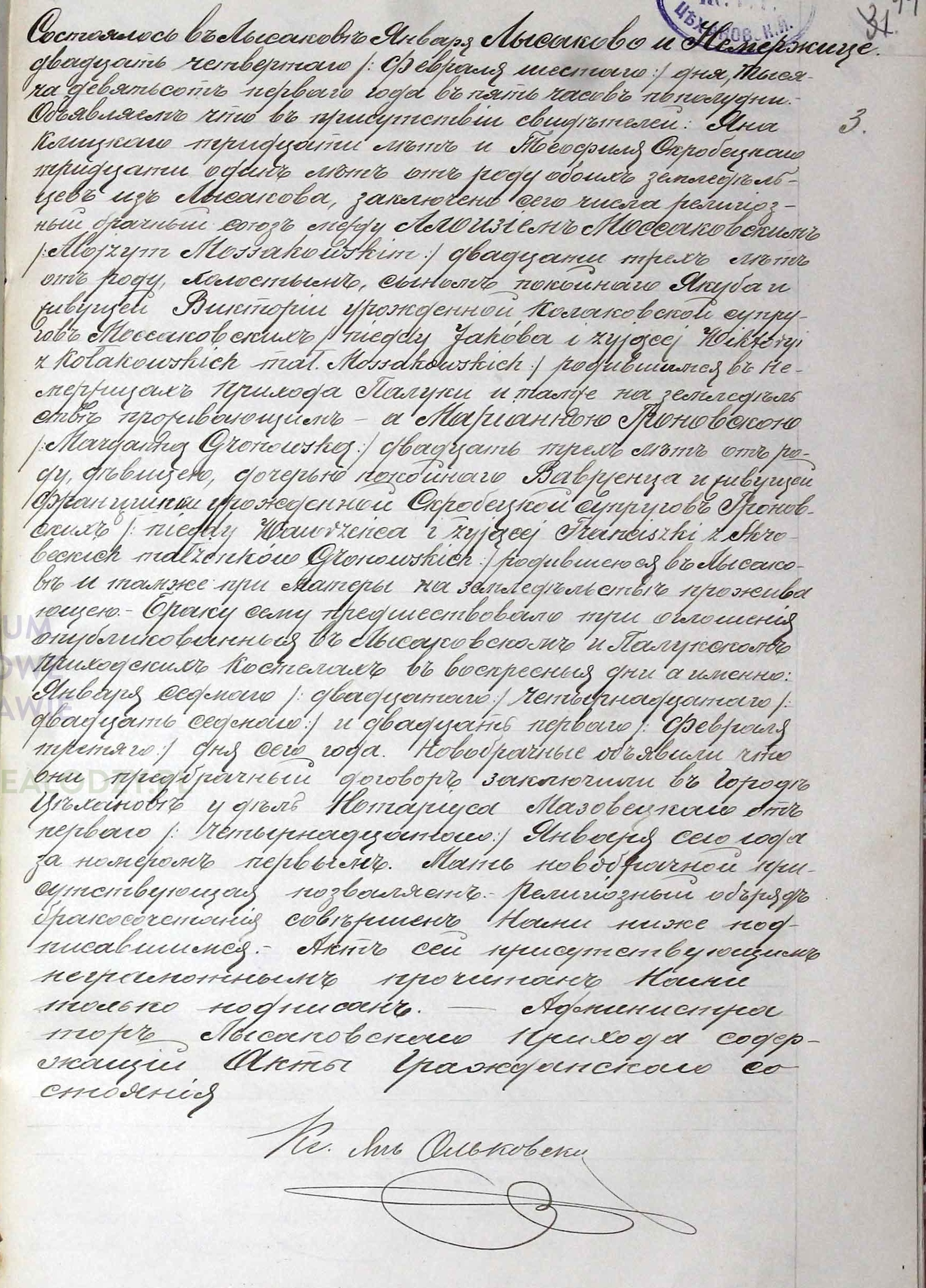 | sw.883518 | sw.333438 (sw.333438) | sw.333439 (sw.333439) | Akt małżeństwa: Łysakowo (obecn. woj. mazow.), 3/1901 [indeks na http://geneteka.genealodzy.pl/] http://metryki.genealodzy.pl/metryki.php?op=kt&ar=13&zs=0147d&sy=1901&kt=2 [podgląd] |