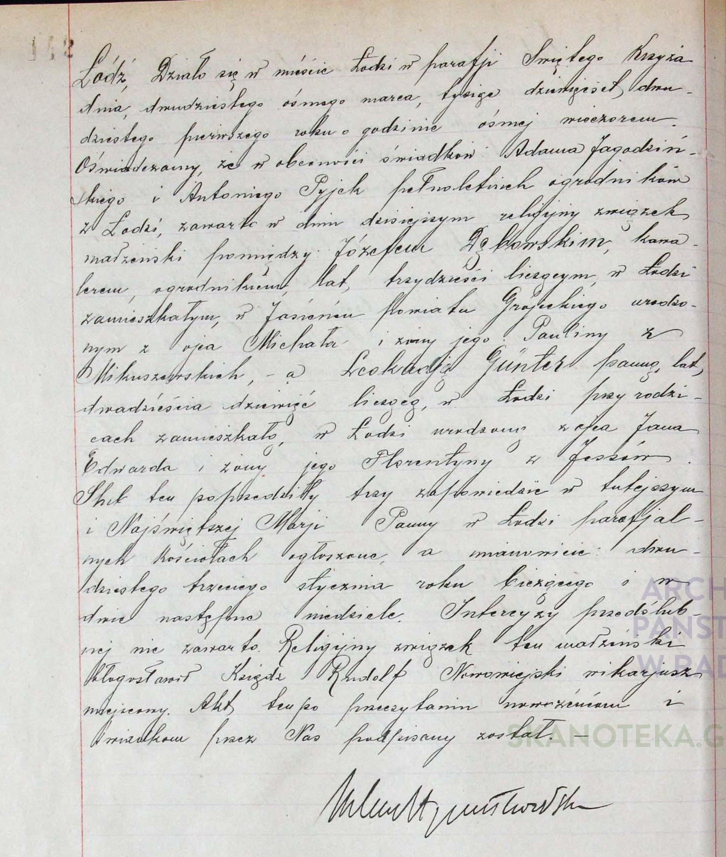 | sw.1299031 | sw.1299031 | sw.890353 (sw.890353) | sw.890356 (sw.890356) | Akt małżeństwa: Łódź św. Krzyż (obecn. woj. łódz.), 142/1921 [indeks na http://geneteka.genealodzy.pl/] http://metryki.genealodzy.pl/metryki.php?op=kt&ar=3&zs=1563d&sy=1921b&kt=1 [podgląd] |