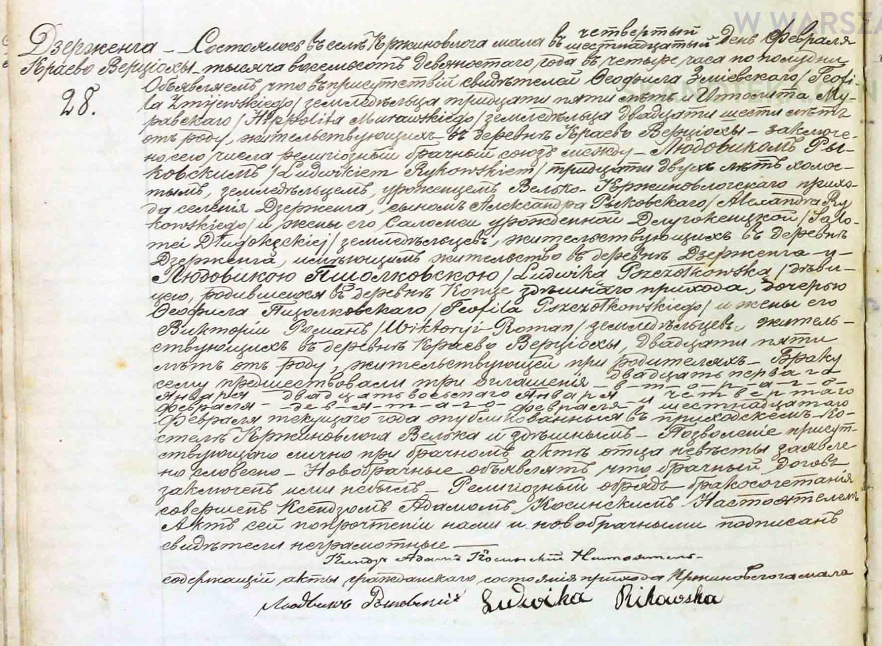 | sw.617093 | sw.617093 | sw.90449 (sw.90449) | sw.90450 (sw.90450) | Akt małżeństwa: Krzynowłoga Mała (obecn. woj. mazow.), 28/1890 [indeks na http://geneteka.genealodzy.pl/] http://metryki.genealodzy.pl/metryki.php?op=kt&ar=6&zs=0130d&sy=1890&kt=2 [podgląd] |