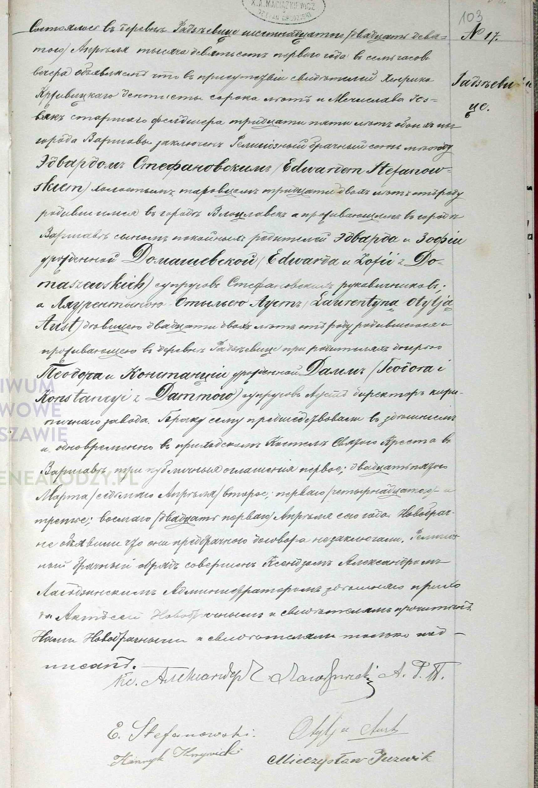 | sw.1283282 | sw.1283282 | sw.905656 (sw.905656) | sw.905659 (sw.905659) | Akt małżeństwa: Radziejowice (obecn. woj. mazow.), 17/1901 [indeks na http://geneteka.genealodzy.pl/] http://metryki.genealodzy.pl/metryki.php?op=kt&ar=2&zs=0077d&sy=1901&kt=2 [podgląd] |