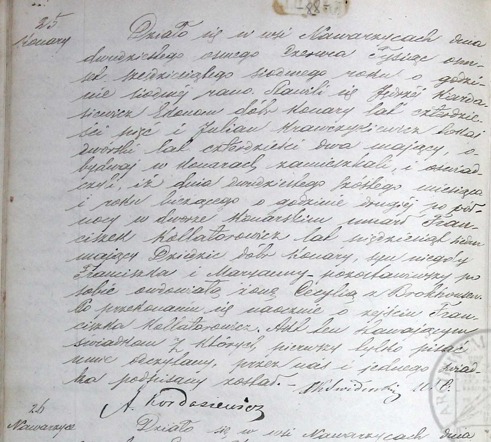 | sw.909888 | sw.909888 | sw.591695 (sw.591695) | sw.909259 (sw.909259) | Akt urodzenia: Nawarzyce (obecn. woj. świętok.), 31/1859 [indeks na http://geneteka.genealodzy.pl/] |