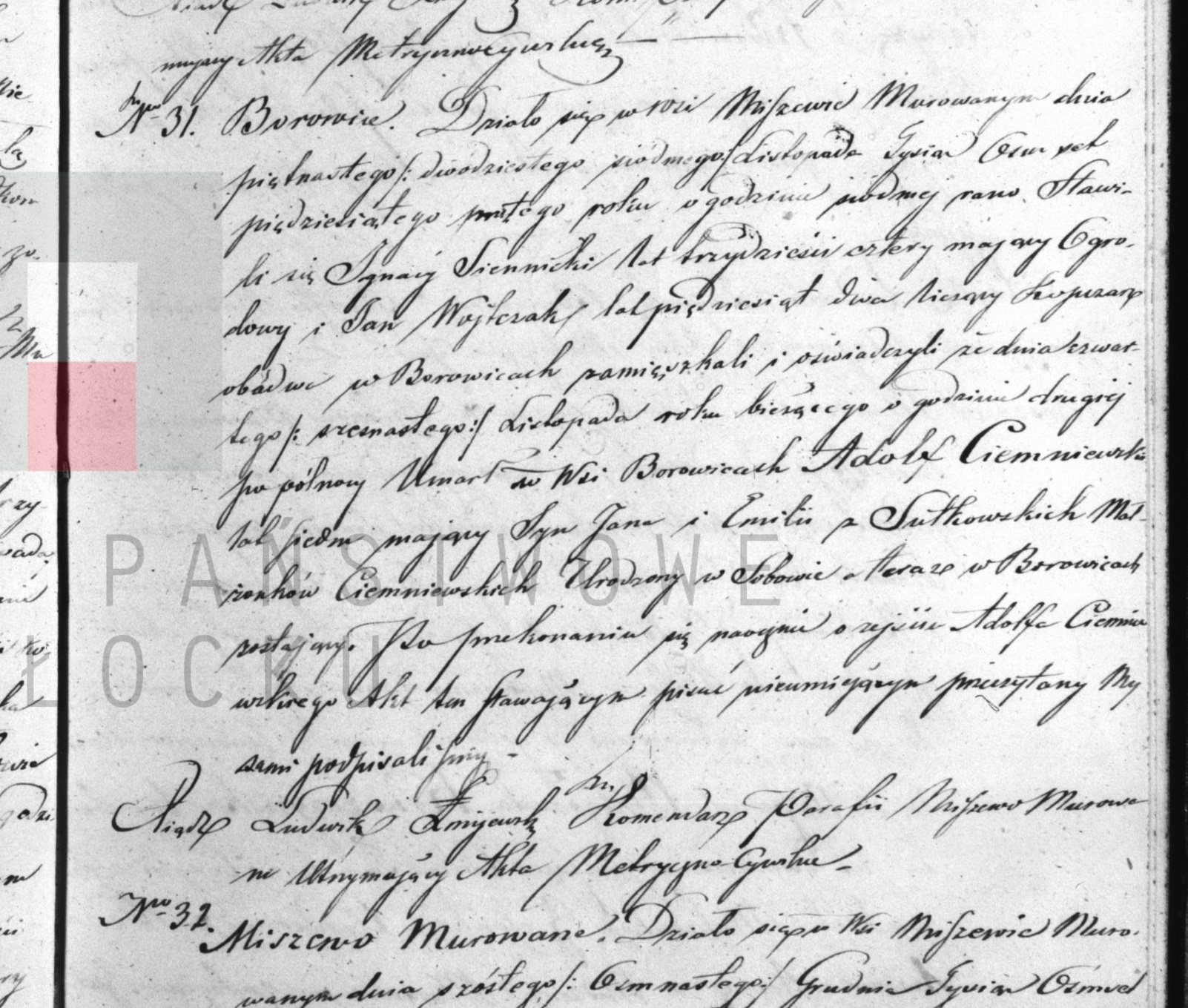 | sw.909490 | sw.909490 | 3.385.175 (3.385.175) | sw.909444 (sw.909444) | Akt zgonu: Miszewo Murowane (obecn. woj. mazow.), 31/1855 [indeks na http://geneteka.genealodzy.pl/] https://szukajwarchiwach.pl/50/150/0/-/45/skan/full/dj_F3eF6JFDmw4q8LfIBNA [podgląd] |