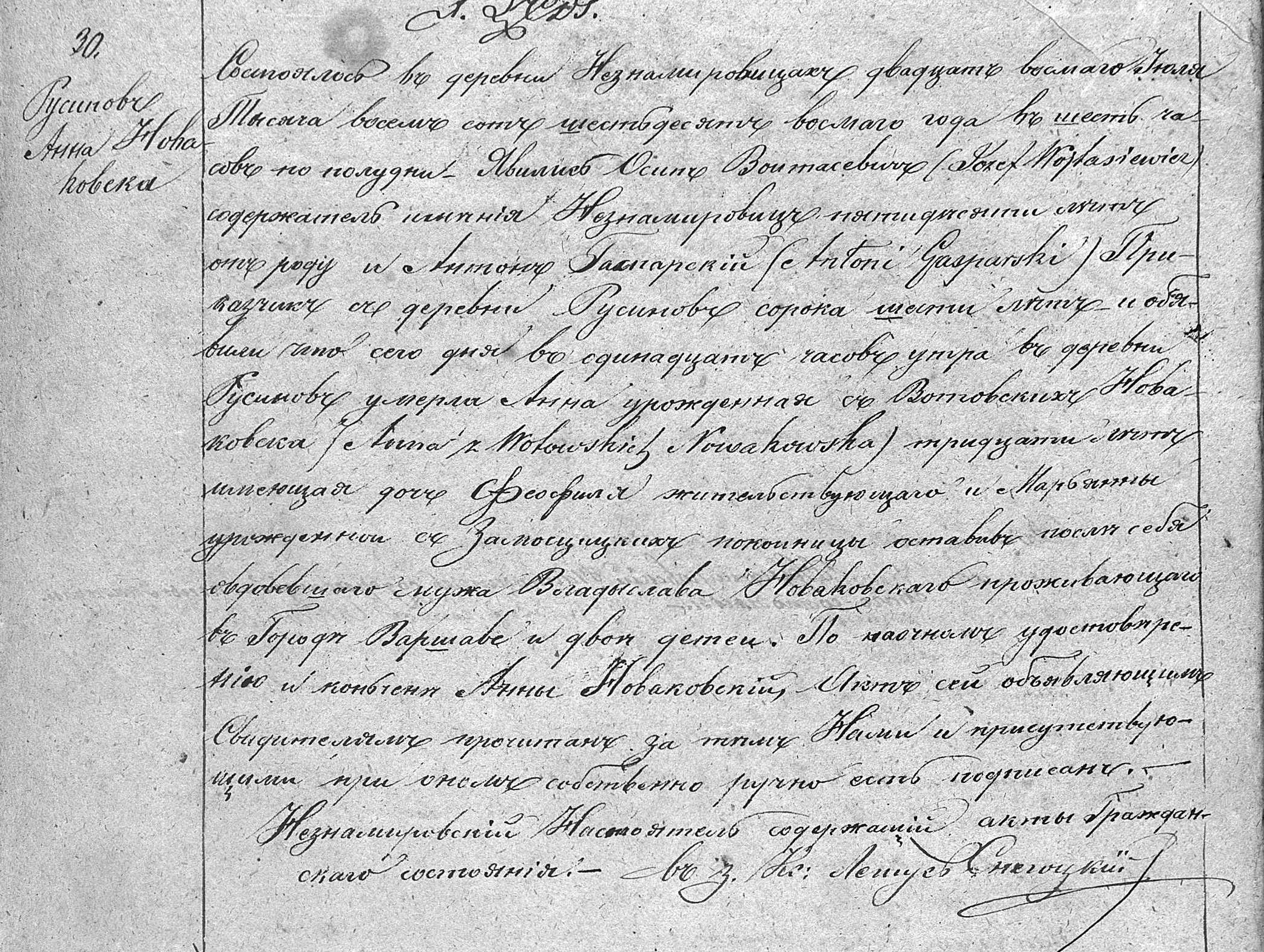 | genetekaz.1059351 | 28 | jul | 1868 | xpar.697 | Akt zgonu: Nieznamierowice (obecn. woj. mazow.), 30/1868 https://familysearch.org/pal:/MM9.3.1/TH-266-12410-64317-7?cc=1407440&wc=M93N-MNB:n1129722392 [podglad] | Akt zgonu obecny w bazie Geneteka | ||