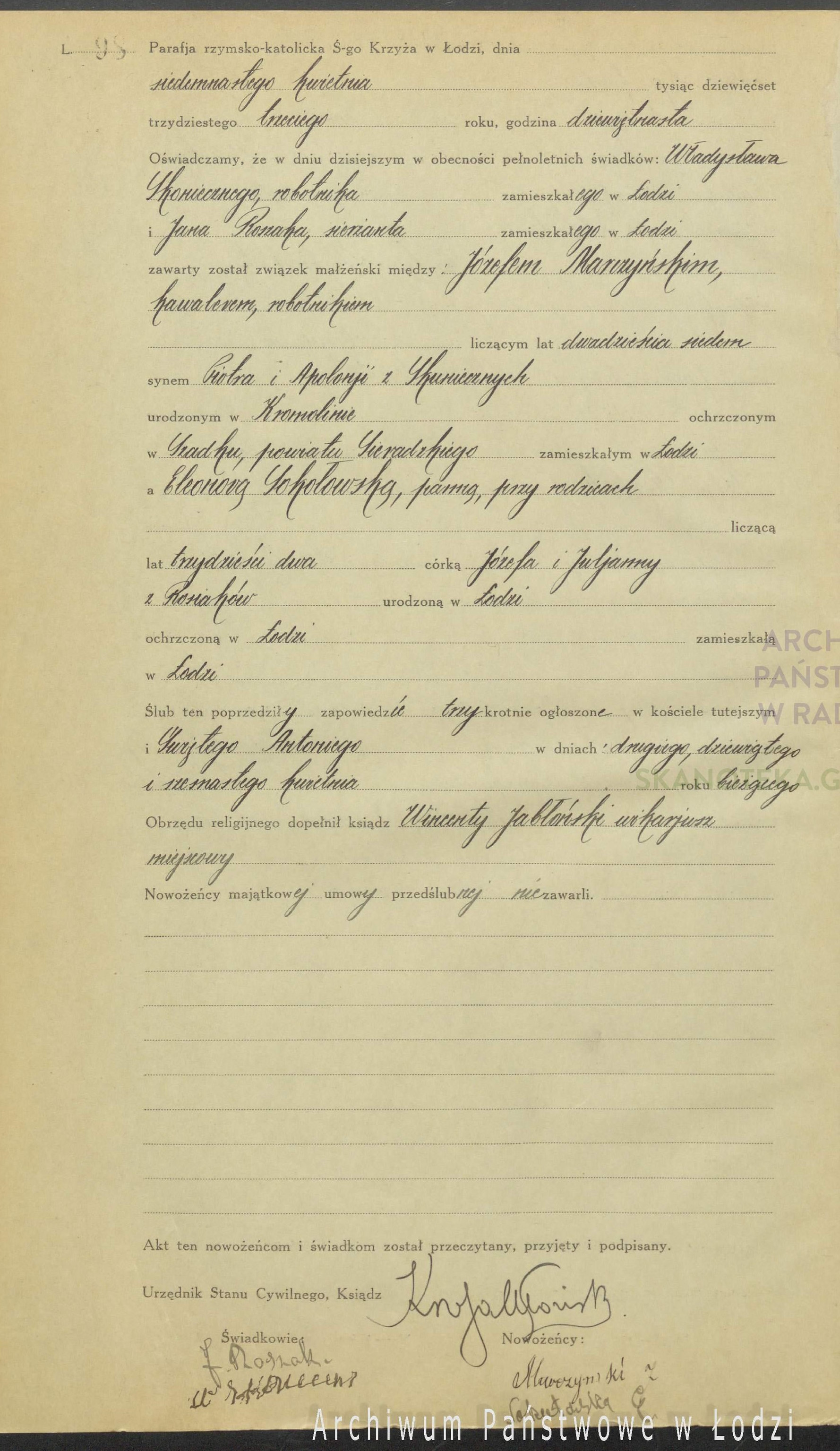 | psb.26695.3 | sw.935471 | sw.935472 (sw.935472) | sw.935473 (sw.935473) | Akt małżeństwa: Łódź św. Józef (obecn. woj. łódz.), 110/1923 [indeks na http://geneteka.genealodzy.pl/] http://metryki.genealodzy.pl/metryki.php?op=kt&ar=3&zs=2474d&sy=1923b&kt=1 [podgląd] |