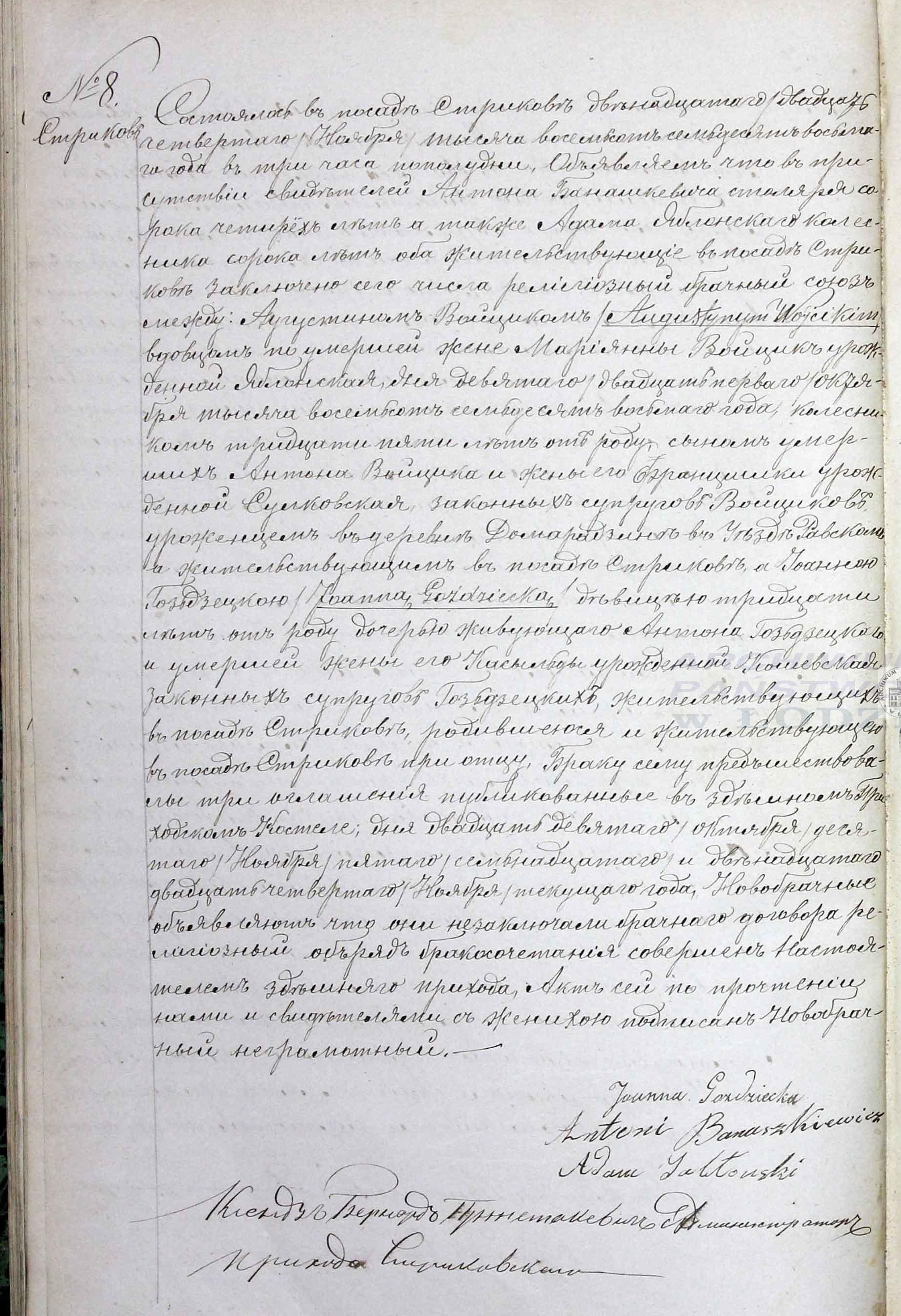 | sw.941958 | sw.941958 | sw.941165 (sw.941165) | sw.941166 (sw.941166) | Akt małżeństwa: Stryków (obecn. woj. łódz.), 8/1878 [indeks na http://geneteka.genealodzy.pl/] http://metryki.genealodzy.pl/metryki.php?op=kt&ar=3&zs=1682d&sy=1878&kt=2 [podgląd] |