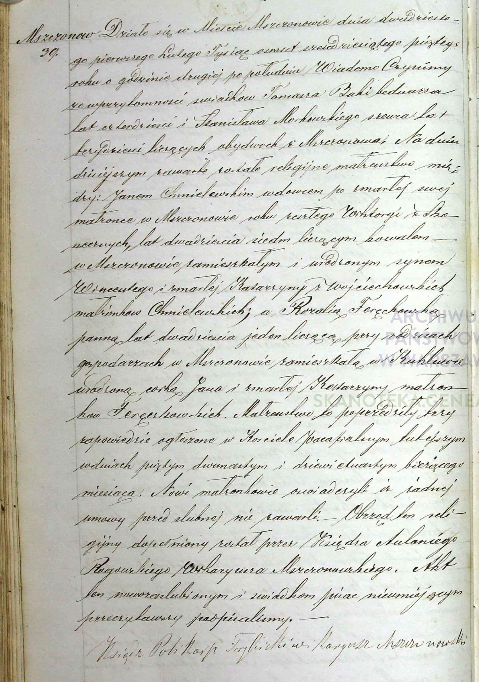 | sw.952296 | sw.1148618 | sw.951714 (sw.951714) | sw.951715 (sw.951715) | Akt małżeństwa: Mszczonów (obecn. woj. mazow.), 39/1865 [indeks na http://geneteka.genealodzy.pl/] http://metryki.genealodzy.pl/metryki.php?op=kt&ar=2&zs=0024d&sy=1865&kt=2 [podgląd] |