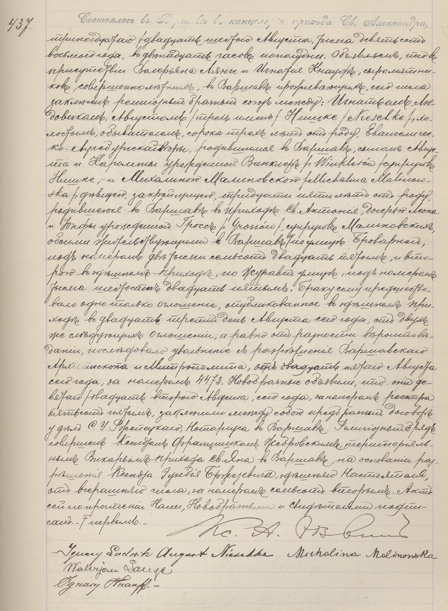 | sw.1101984 | sw.1101984 | sw.1101985 (sw.956943) | sw.1101986 (sw.956944) | Akt małżeństwa: Warszawa św. Aleksander (obecn. m. Warszawa), 437/1908 [indeks na http://geneteka.genealodzy.pl/] http://metryki.genealodzy.pl/metryka.php?ar=8&zs=9214d&sy=324&kt=1&skan=437.jpg [podgląd] |