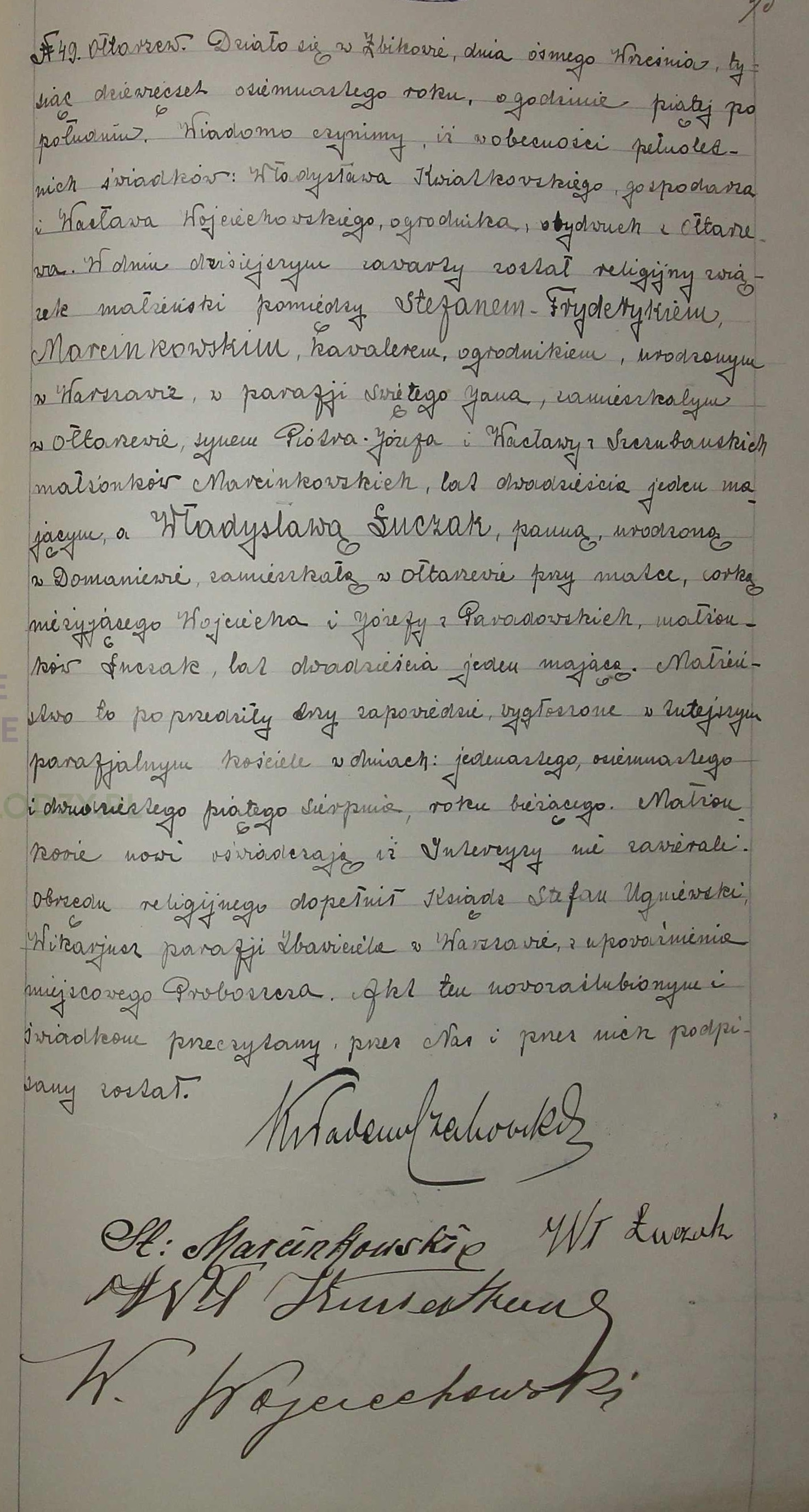 | sw.960264 | sw.960265 (sw.960265) | sw.960266 (sw.960266) | Akt małżeństwa: Warszawa św. Aleksander (obecn. m. Warszawa), 393/1896 [indeks na http://geneteka.genealodzy.pl/] http://metryki.genealodzy.pl/metryki.php?op=kt&ar=1&zs=0162d&sy=1896b&kt=2 [podgląd] |