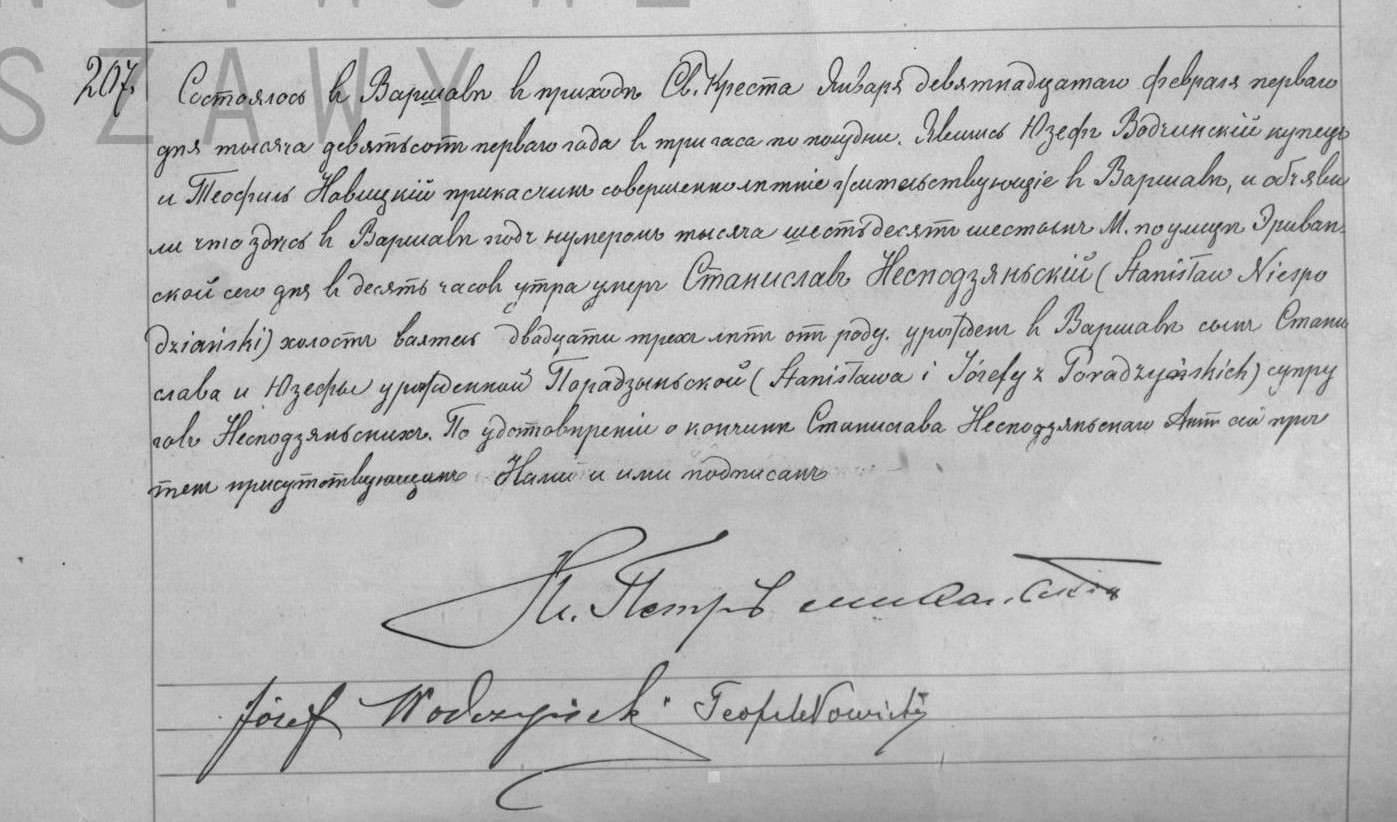 | sw.1044199 | sw.1044199 | sw.962019 (sw.962019) | sw.962020 (sw.962020) | Akt zgonu: Warszawa św. Krzyż (obecn. m. Warszawa), 207/1901 [indeks na http://geneteka.genealodzy.pl/] http://metryki.genealodzy.pl/metryki.php?op=kt&ar=1&zs=0158d&sy=1901b&kt=3 [podgląd] |