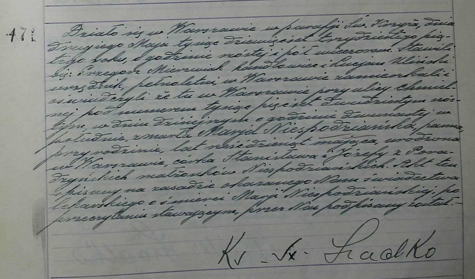 | sw.1044961 | sw.1044961 | sw.962019 (sw.962019) | sw.962020 (sw.962020) | Akt zgonu: Warszawa św. Krzyż (obecn. m. Warszawa), 171/1935 [indeks na http://geneteka.genealodzy.pl/] http://metryki.genealodzy.pl/metryki.php?op=kt&ar=1&zs=0158d&sy=1935&kt=3 [podgląd] |