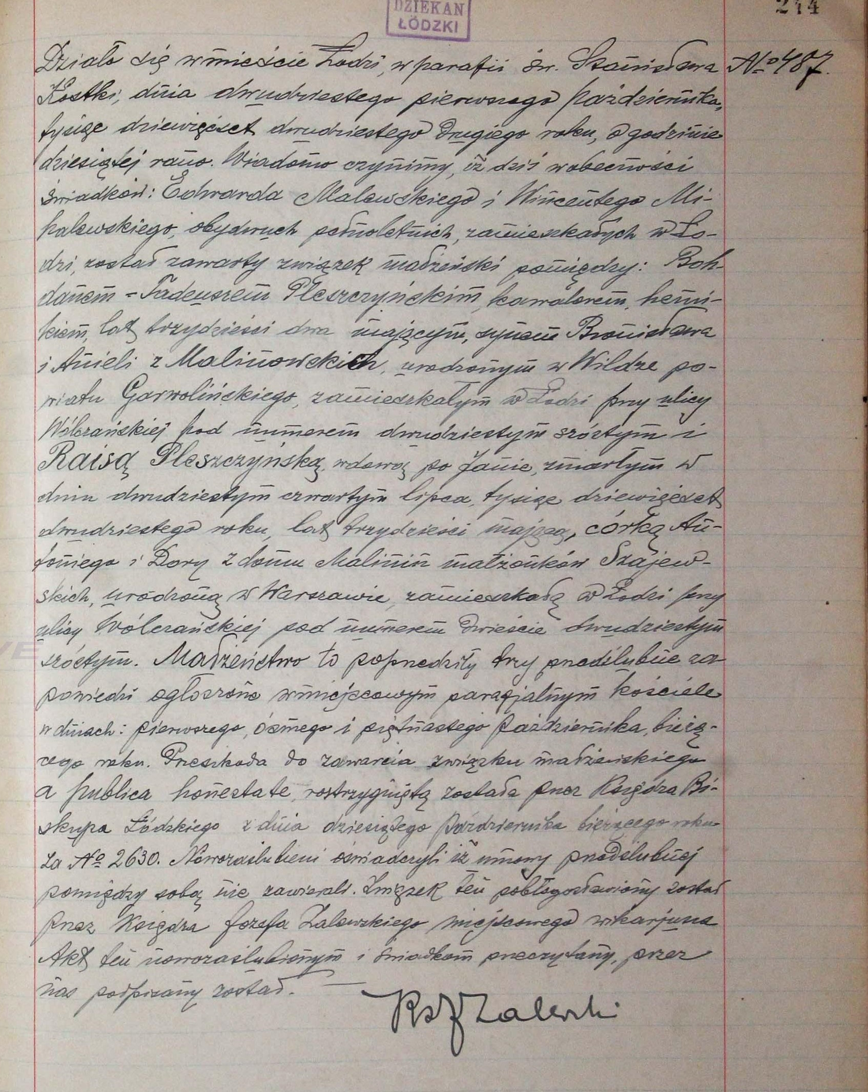 | sw.966394 | m | Bronisław | | | | | Pleszczyński | | | | | Akt małżeństwa: Żeliszew (obecn. woj. mazow.), 25/1894 [indeks na http://geneteka.genealodzy.pl/] https://szukajwarchiwach.pl/62/244/0/1/114#tabJednostka |