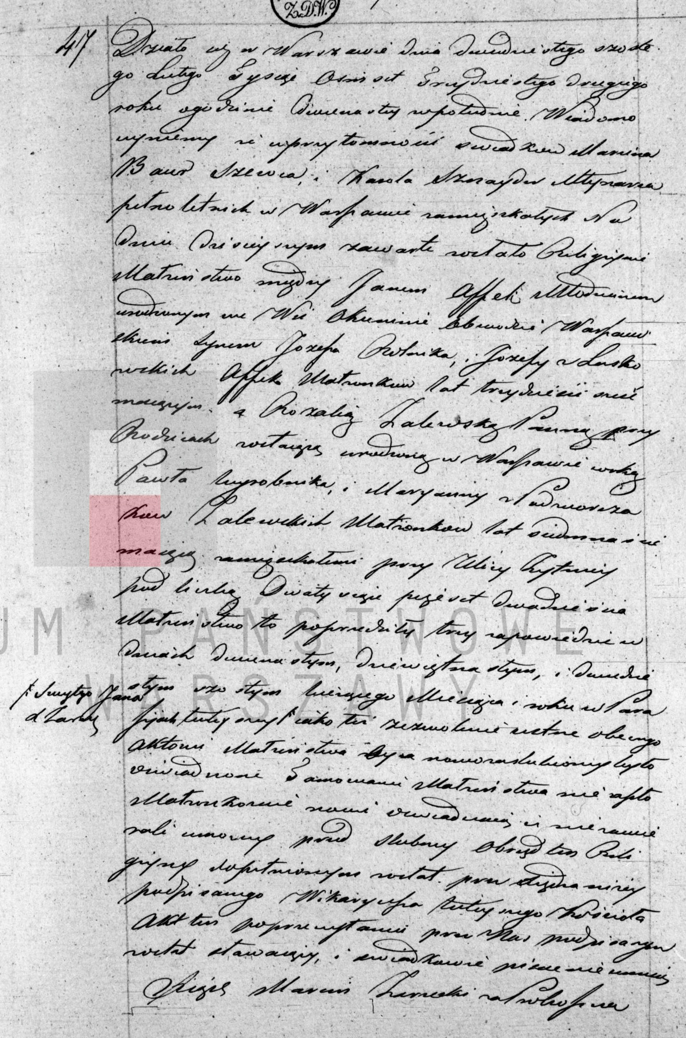 | sw.968950 | sw.968949 (sw.968949) | | | 1832 | | xpar.1443 | Akt małżeństwa: Warszawa św. Andrzej (obecn. m. Warszawa), rok 1832, nr aktu 47 [indeks na http://geneteka.genealodzy.pl/] [podgląd] | | | Akt ślubu obecny w bazie Geneteka |