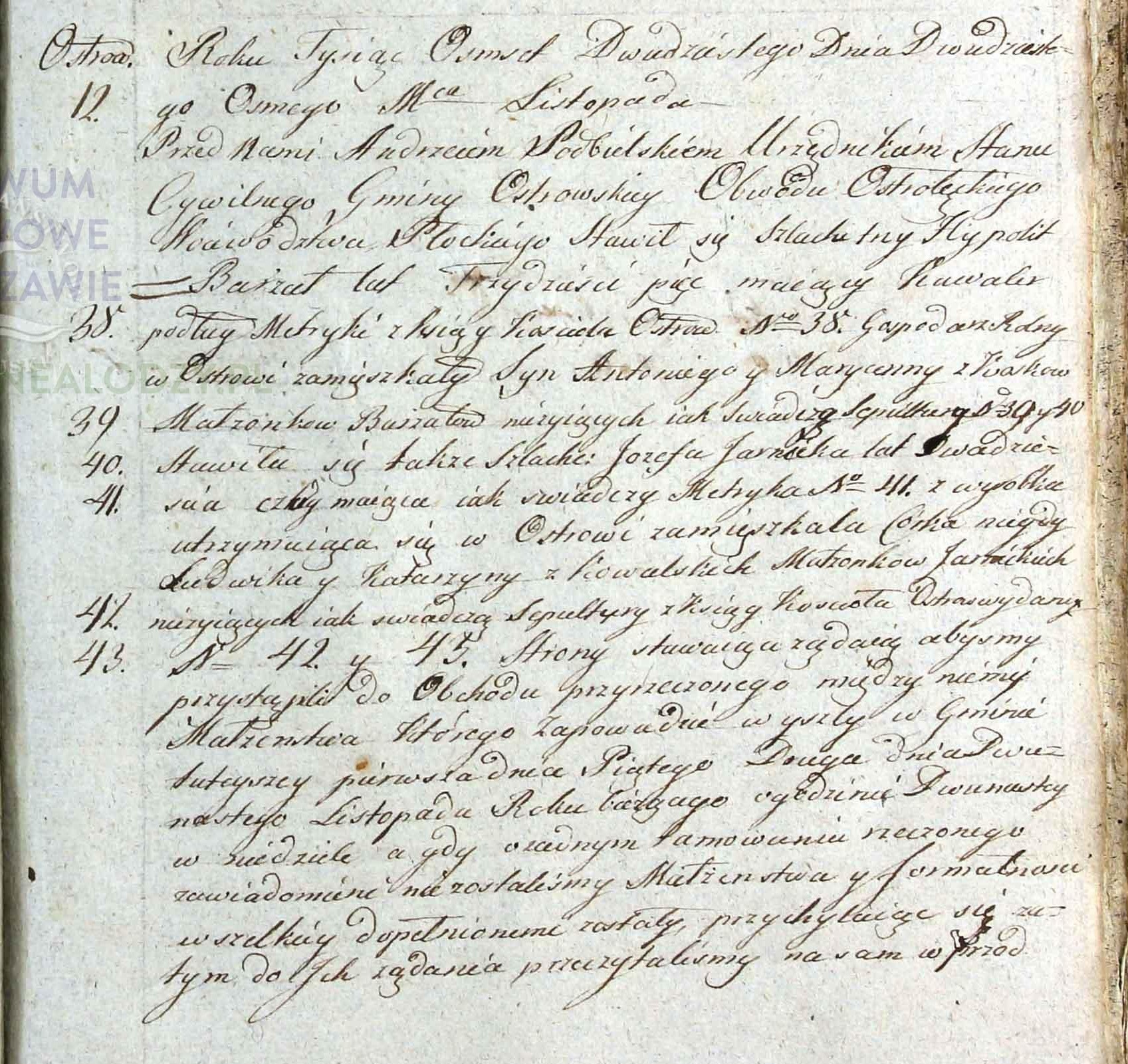 | sw.984242 | sw.984243 (sw.984243) | sw.984244 (sw.984244) | Akt małżeństwa: Ostrów Mazowiecka (obecn. woj. mazow.), 12/1820 [indeks na http://geneteka.genealodzy.pl/] http://metryki.genealodzy.pl/metryki.php?op=kt&ar=6&zs=0265d&sy=1820&kt=7 [podgląd] |