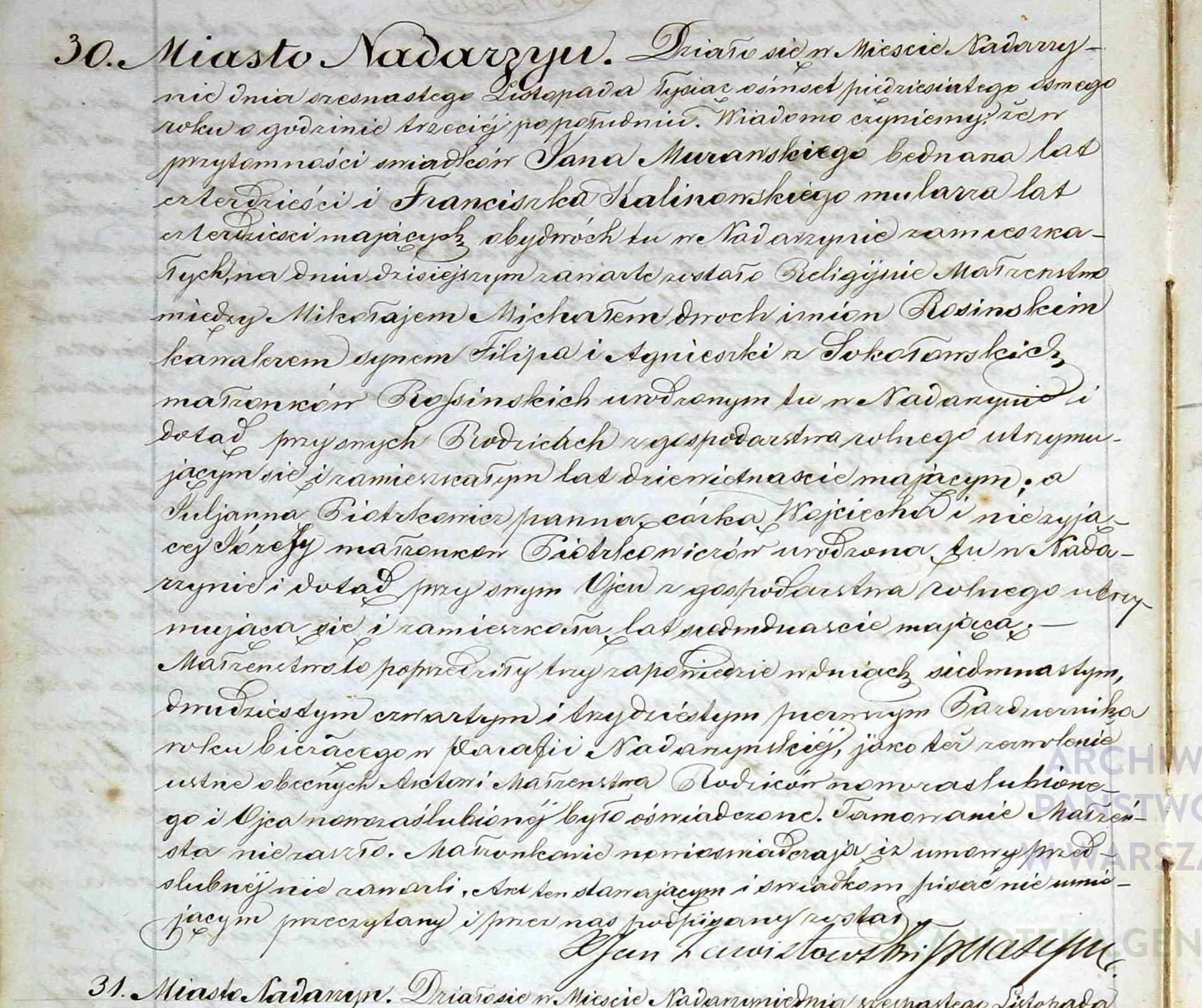 | sw.985140 | sw.965617 (sw.965617) | sw.965618 (sw.965618) | Akt małżeństwa: Nadarzyn (obecn. woj. mazow.), 16/1832 [indeks na http://geneteka.genealodzy.pl/] http://metryki.genealodzy.pl/metryki.php?op=kt&ar=2&zs=0074d&sy=1832&kt=2 [podgląd] |