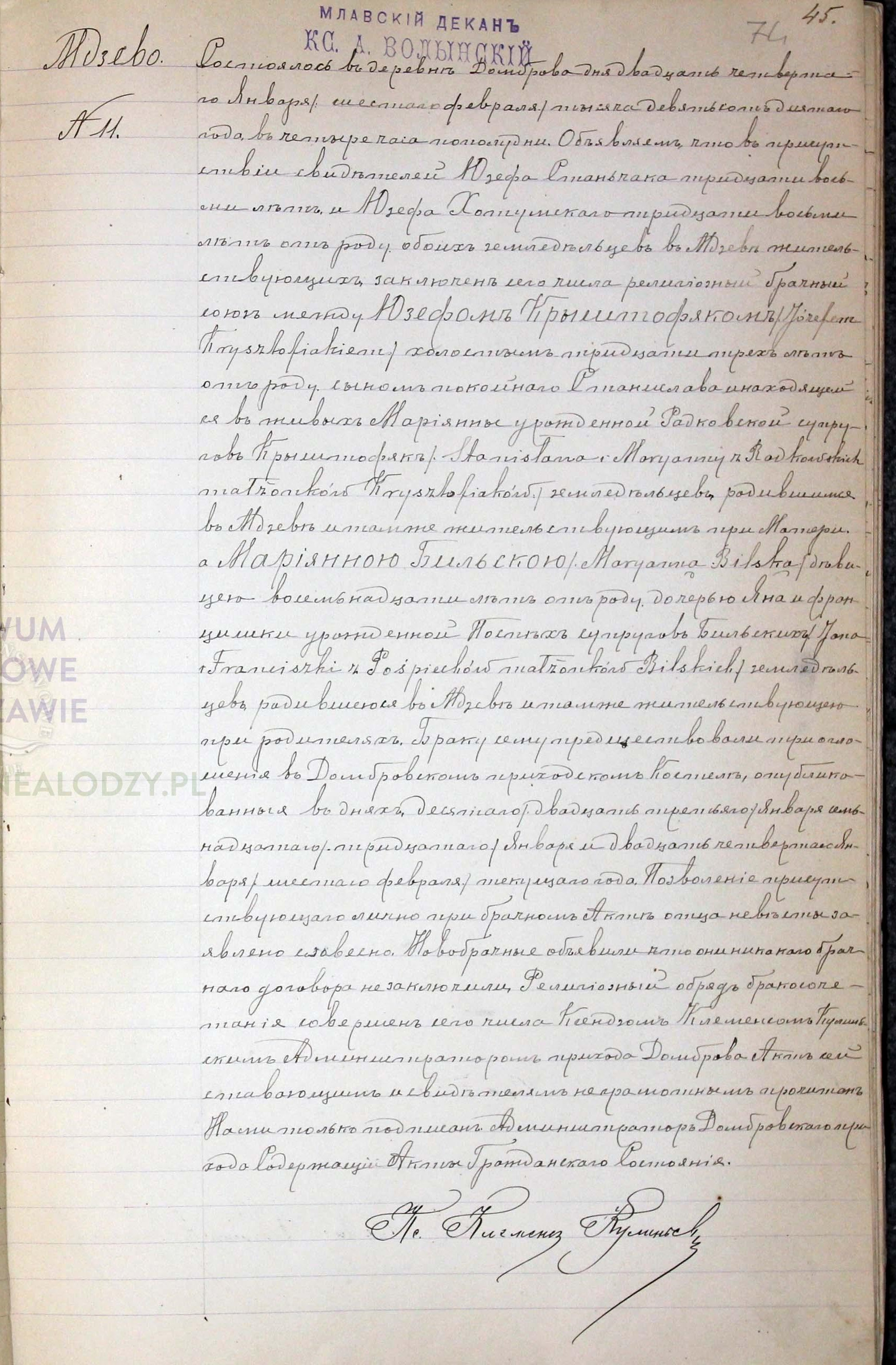 | sw.993184 | sw.889287 (sw.889287) | sw.889288 (sw.889288) | Akt małżeństwa: Dąbrowa (obecn. woj. mazow.), 8/1885 [indeks na http://geneteka.genealodzy.pl/] http://metryki.genealodzy.pl/metryki.php?op=kt&ar=13&zs=0632d&sy=1885&kt=2 [podgląd] |