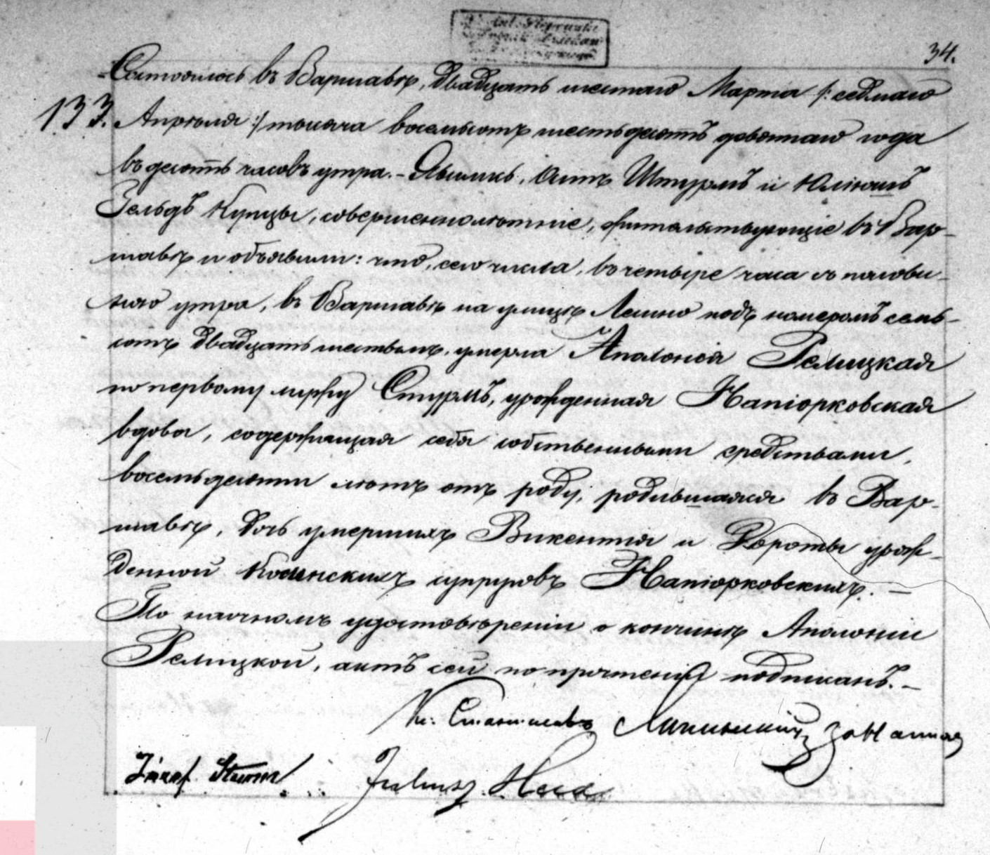 | sw.405172 | f | Apolonia | | | | | Napiórkowski | | | | | Akt małżeństwa: Warszawa św. Jan (obecn. m. Warszawa), 83/1834 [indeks na http://geneteka.genealodzy.pl/] http://metryki.genealodzy.pl/metryka.php?ar=8&zs=9233d&sy=317&kt=4&skan=082-083.jpg [podgląd] |