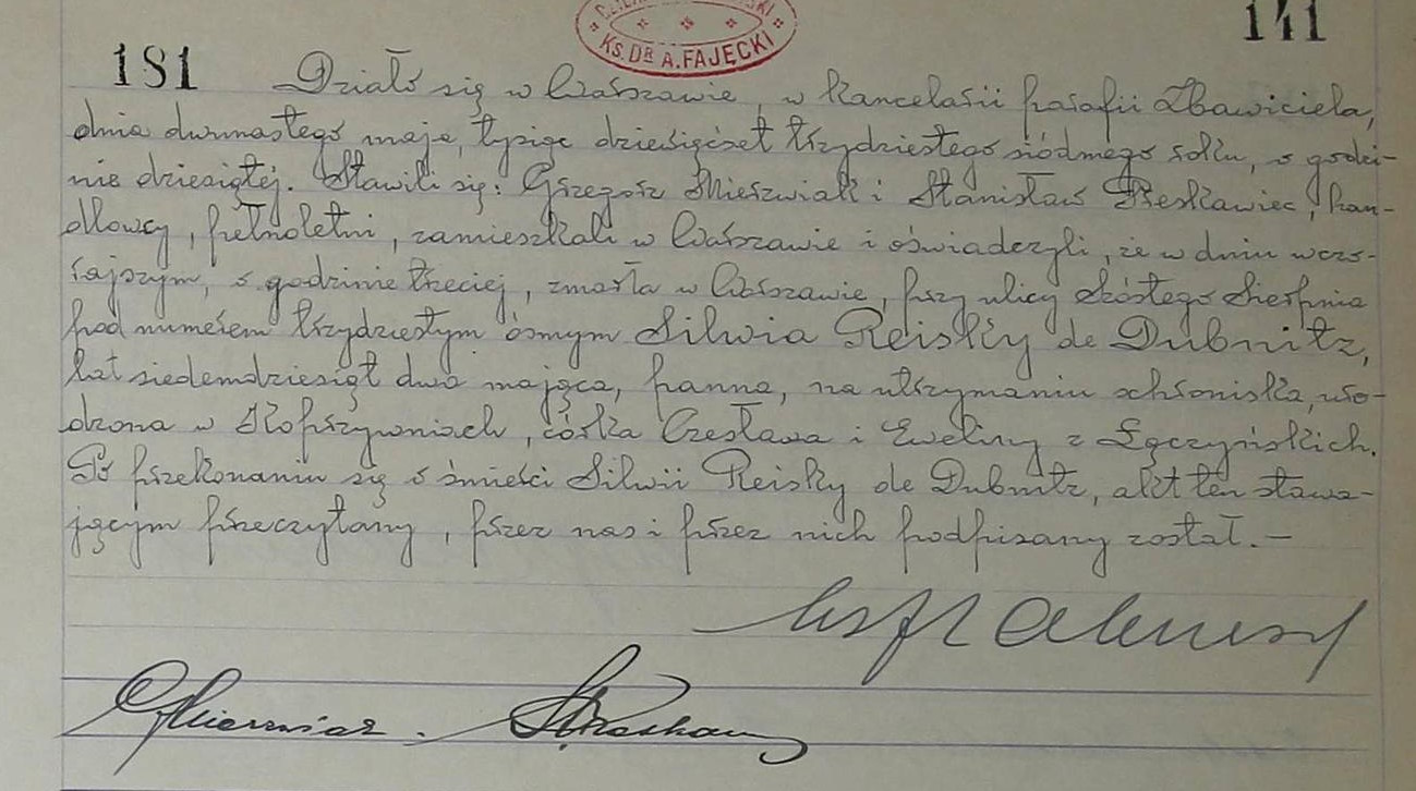 Sylwia bar. Reisky de Dubnitz h. wł. (1865–1937)