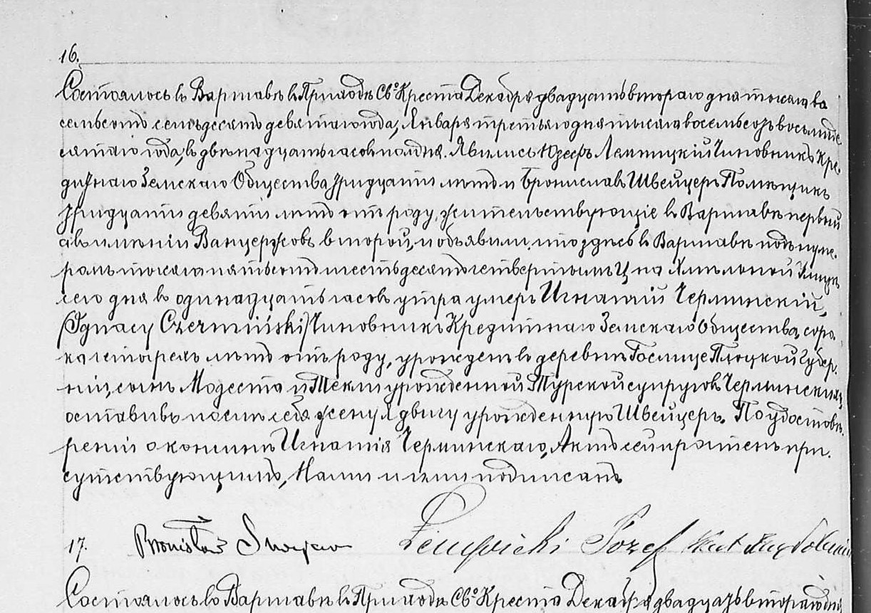 | sw.272713 | sw.272714 (zi.4.28.oo) | sw.272715 (sw.272715) | Akt małżeństwa: Warszawa św. Krzyż (obecn. m. Warszawa), 129/1867 [indeks na http://geneteka.genealodzy.pl/] http://metryki.genealodzy.pl/metryki.php?op=kt&ar=1&zs=0158d&sy=1867&kt=2 [podgląd] |