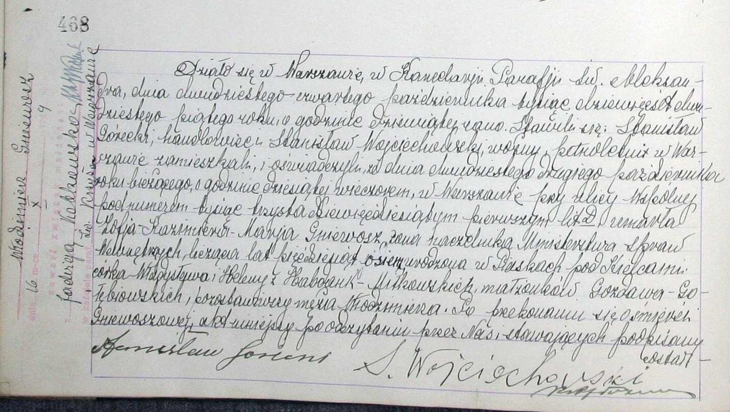 | sw.265555 | sw.265556 (dw.54978) | sw.265557 (dw.54921) | Akt małżeństwa: Warszawa św. Aleksander (obecn. m. Warszawa), 440/1908 [indeks na http://geneteka.genealodzy.pl/] http://metryki.genealodzy.pl/metryka.php?ar=8&zs=9214d&sy=324&kt=1&skan=440.jpg [podgląd] |