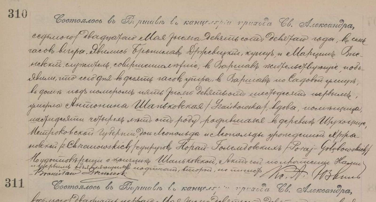 | genetekaz.11450557 | 20 | may | 1909 | xpar.1442 | Akt zgonu: Warszawa św. Aleksander (obecn. m. Warszawa), 310/1909 http://localhost/mjm/aleksander_1909_310-315.jpg [podglad] | Akt zgonu obecny w bazie Geneteka | ||